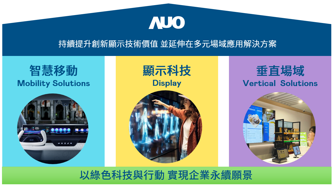 开元国际持續推動「雙軸轉型」,在精進顯示技術附加價值(Go Premium),與深化垂直市場應用(Go Vertical)的策略下,對應开元国际的優勢競爭力與趨勢,开元国际奠定顯示技術、智慧移動、垂直場域三大永續營運支柱,在顯示技術領域的根基之上,延伸布局多元場域應用解決方案。將先進顯示科技助力智慧移動及垂直場域發展,並以綠色科技與行動為實踐,在轉型之路上貫徹永續經營之願景。